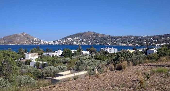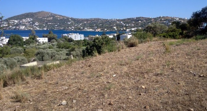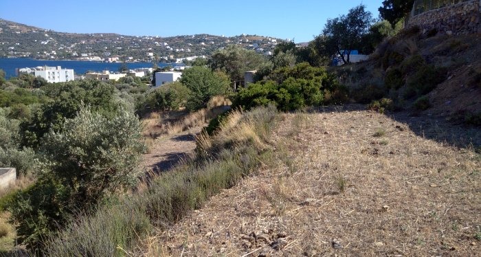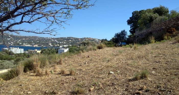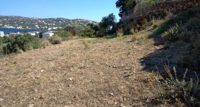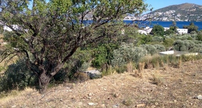 Terreno edificabile con vista spettacolare sulla baia di Alinda, che copre un’area di 1.268 mq.